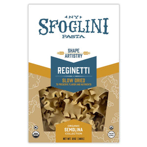 Sfoglini pasta is made using a time-honored Italian technique known as the bronze-die method. This helps create the signature shapes of each piece of organic whole grain pasta or semolina pasta. It also contributes to a rough, textured surface that holds more sauce. Equally importantly, we slow dry our pasta at low temperatures over many hours, another classic Italian technique that preserves the flavor, nutrients and authentic taste of Sfoglini products.